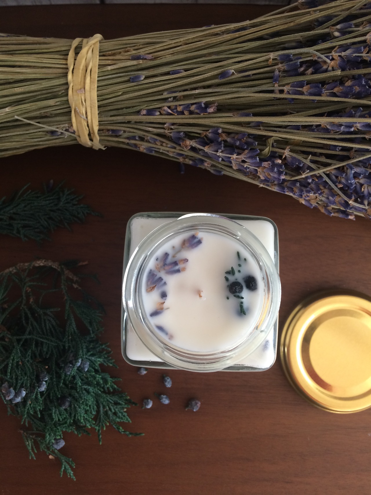 *キャンドルに混ざっているラベンダーとジュニパーに炎が燃えうつる可能性があります。キャンドルが溶けたら適宜取り除いてください