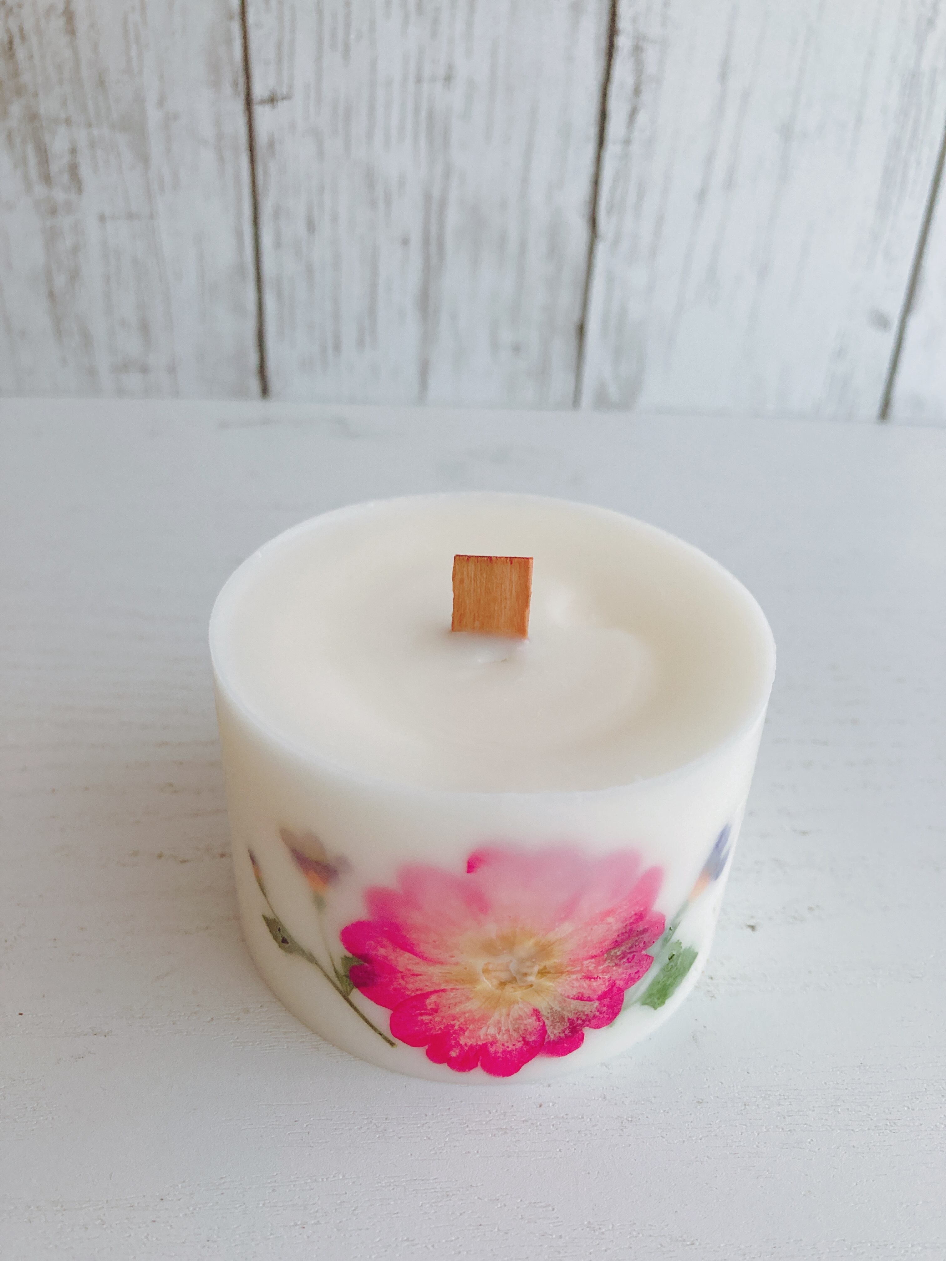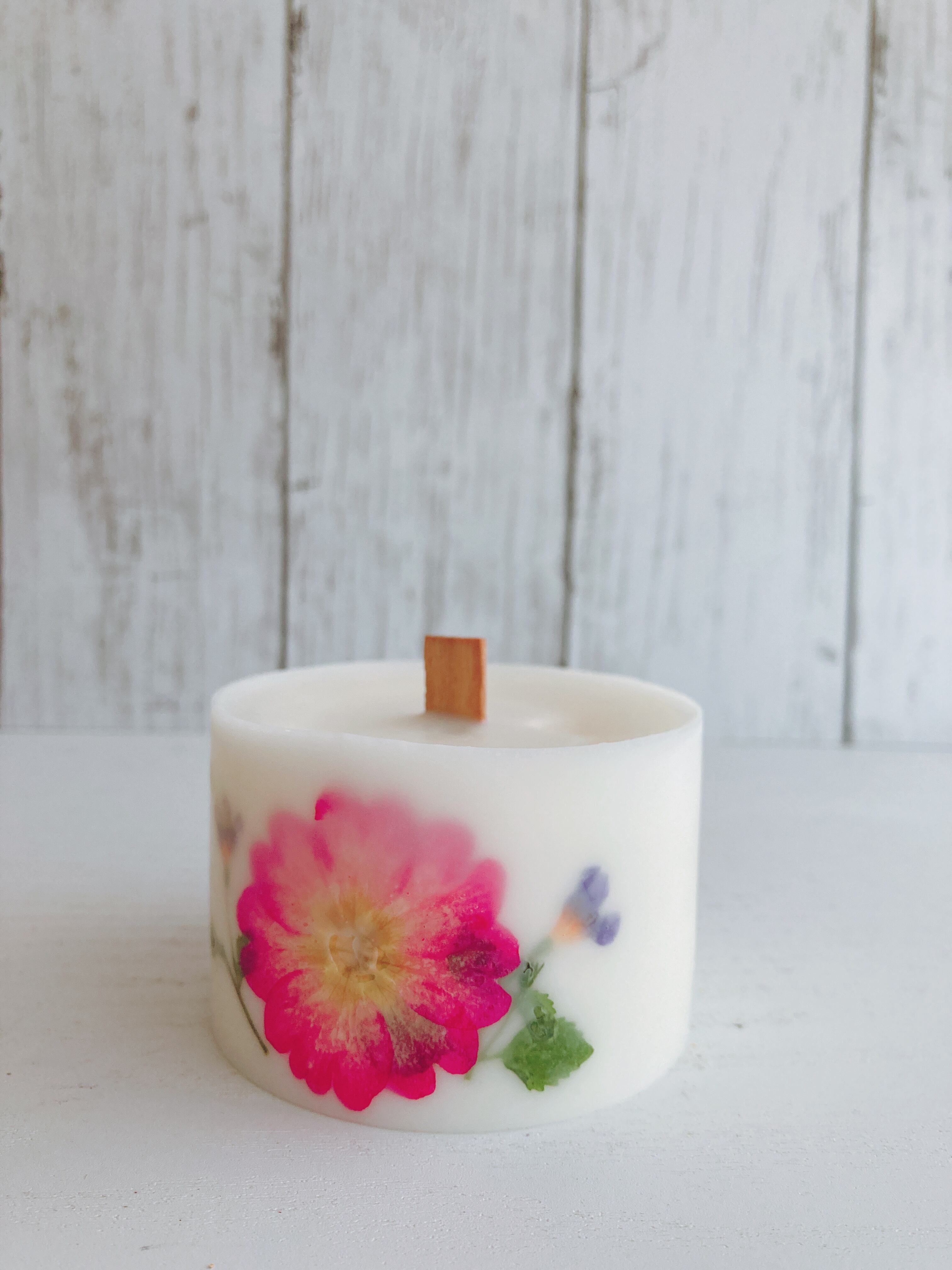 そんな植物由来の体に優しいソイワックスからできた押し花キャンドルです。
