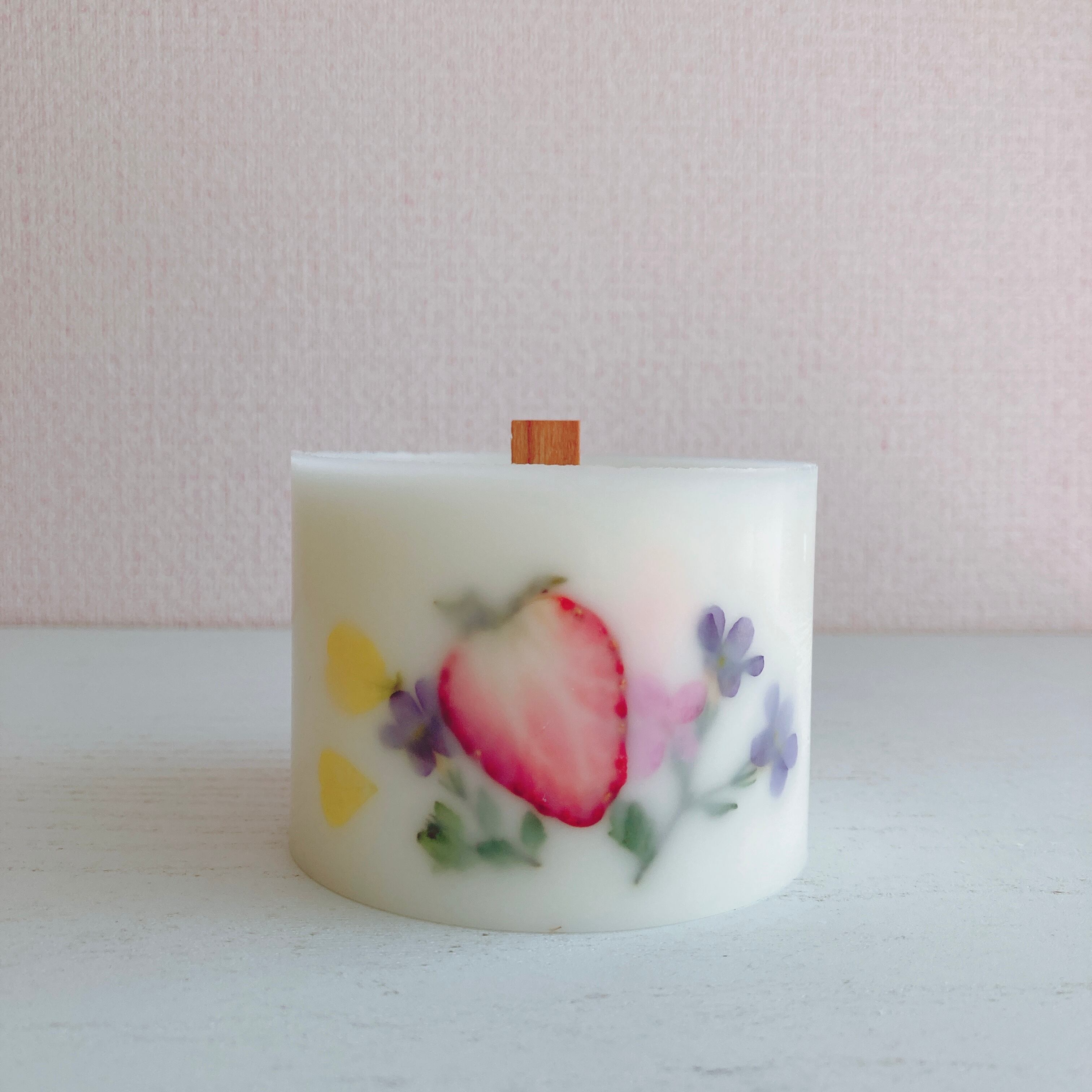 そんな植物由来の体に優しいソイワックスに、押し花をあしらいました。