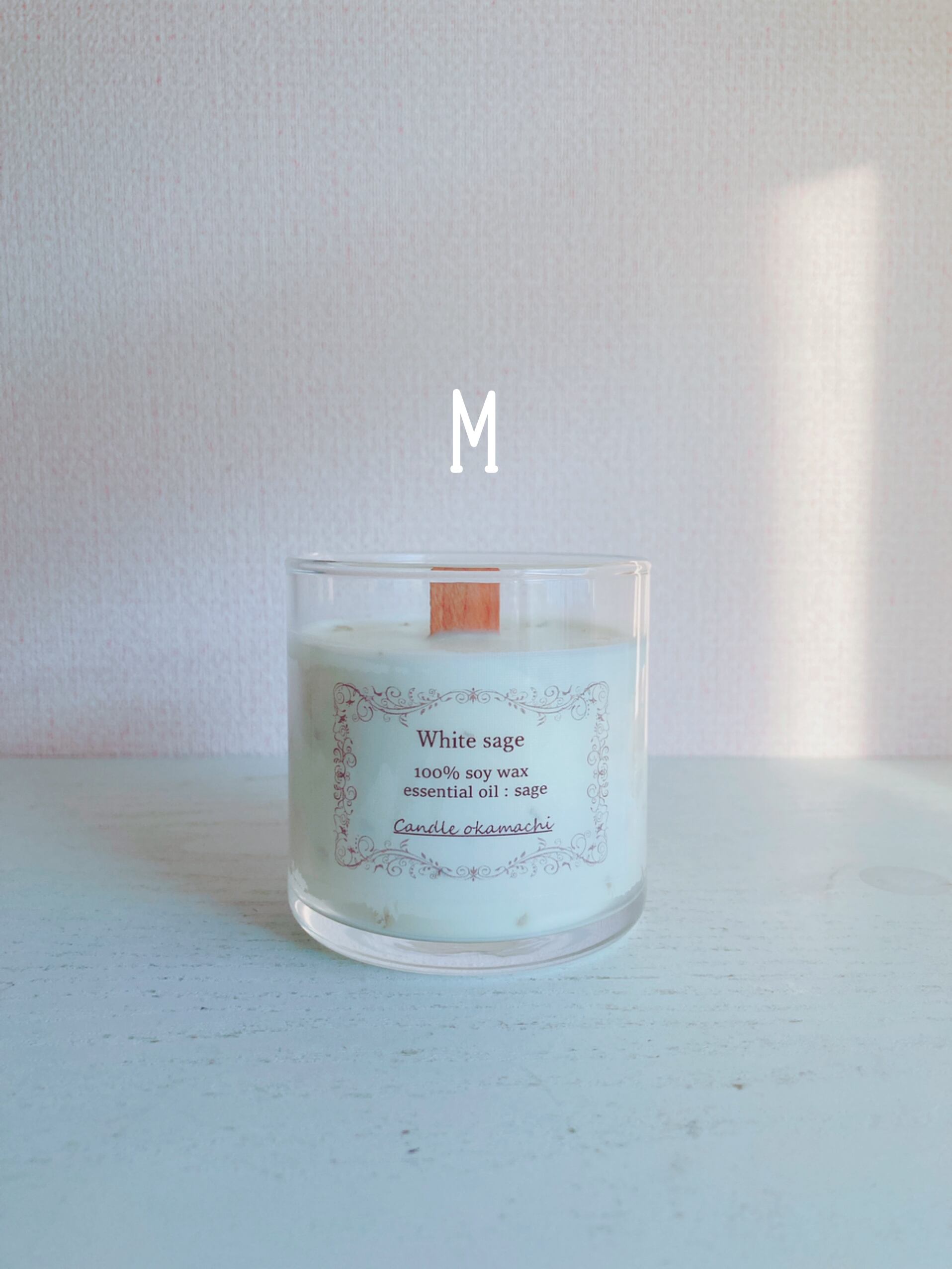 無農薬で育てられた良質なカルフォルニア産ホワイトセージとセージの精油を使用したキャンドル(Mサイズ)です。