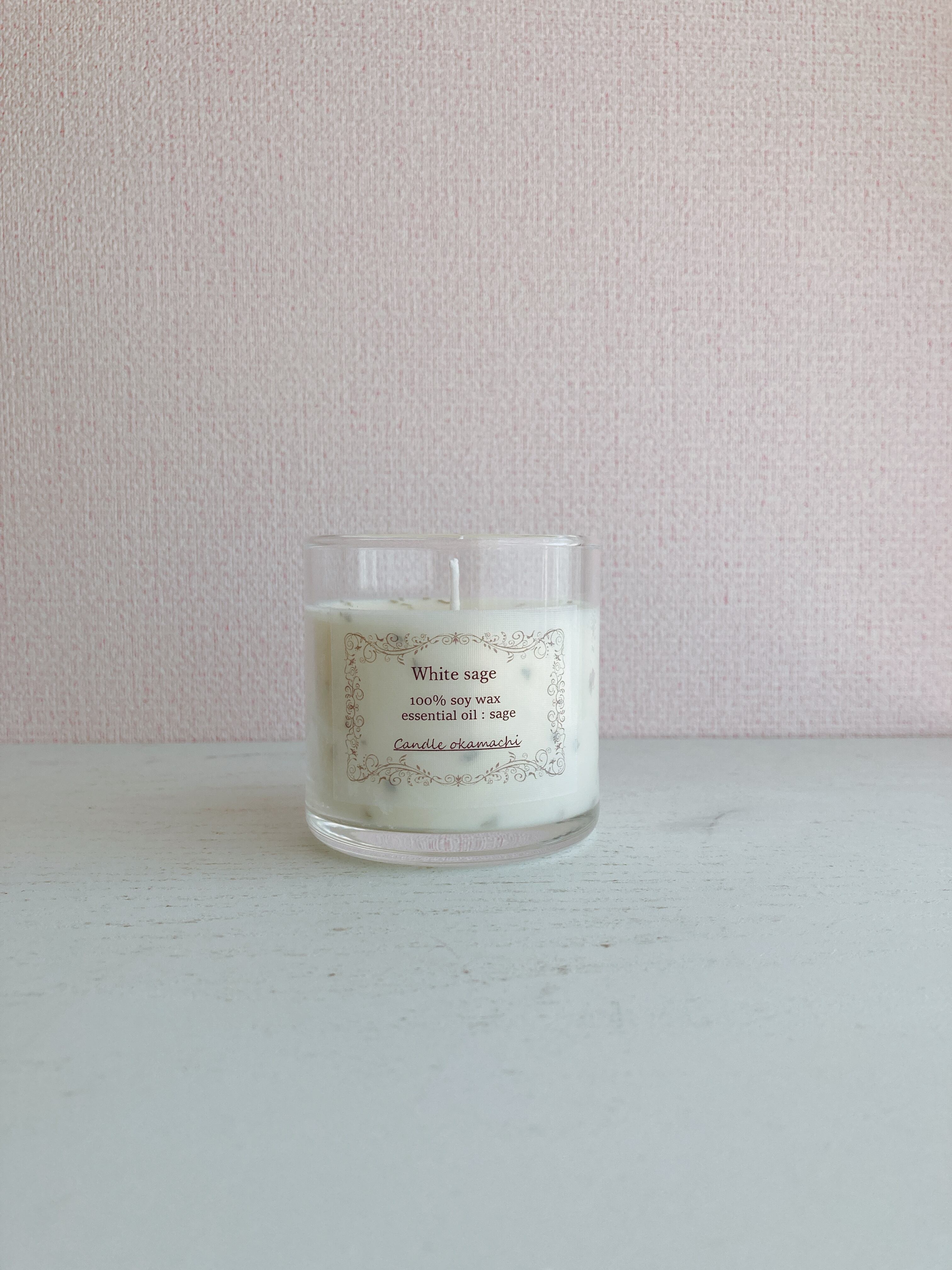 無農薬で育てられた良質なカルフォルニア産ホワイトセージとセージの精油を使用したキャンドル(Mサイズ)です。