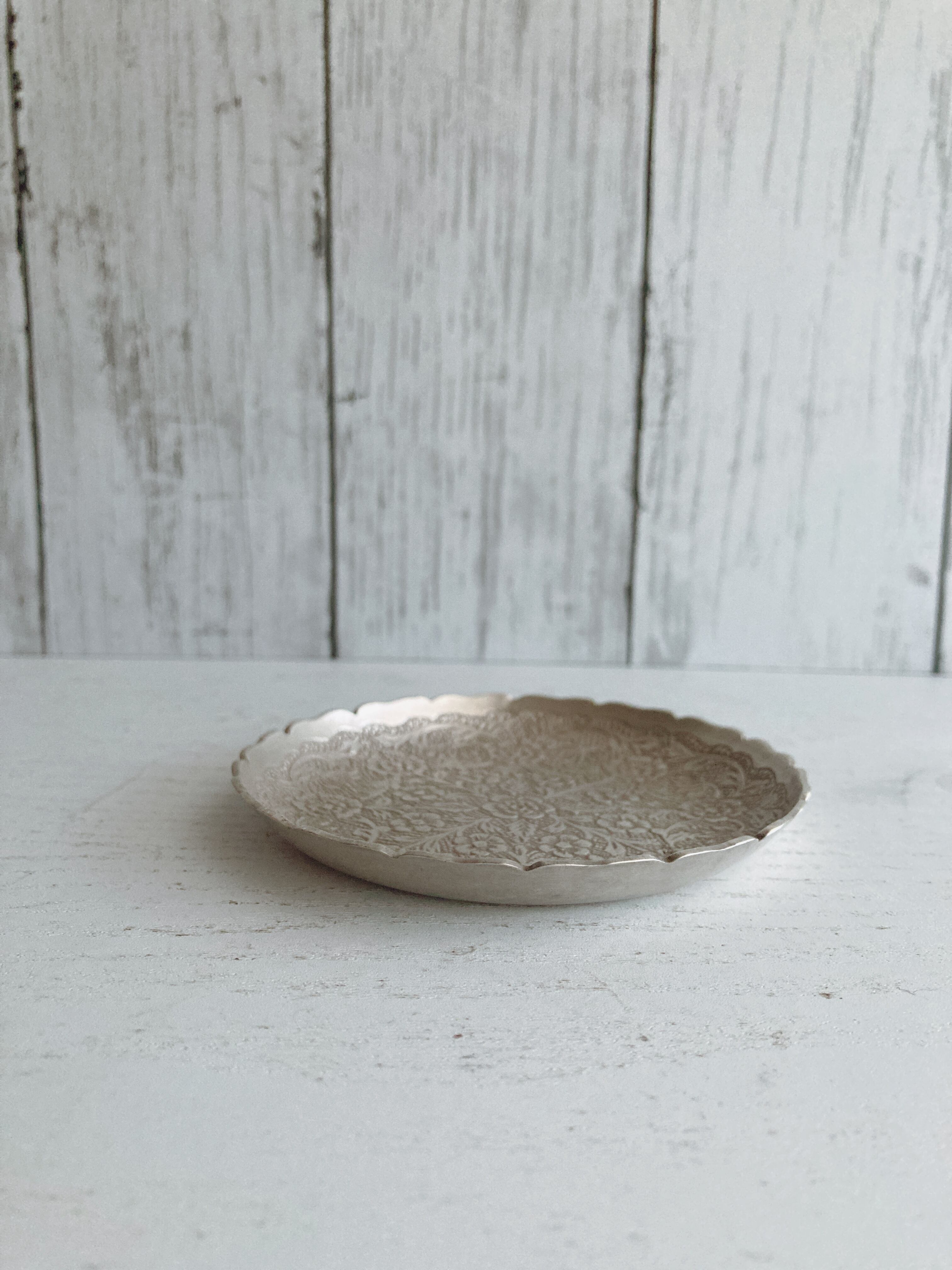 ・花模様のお皿(シルバー)