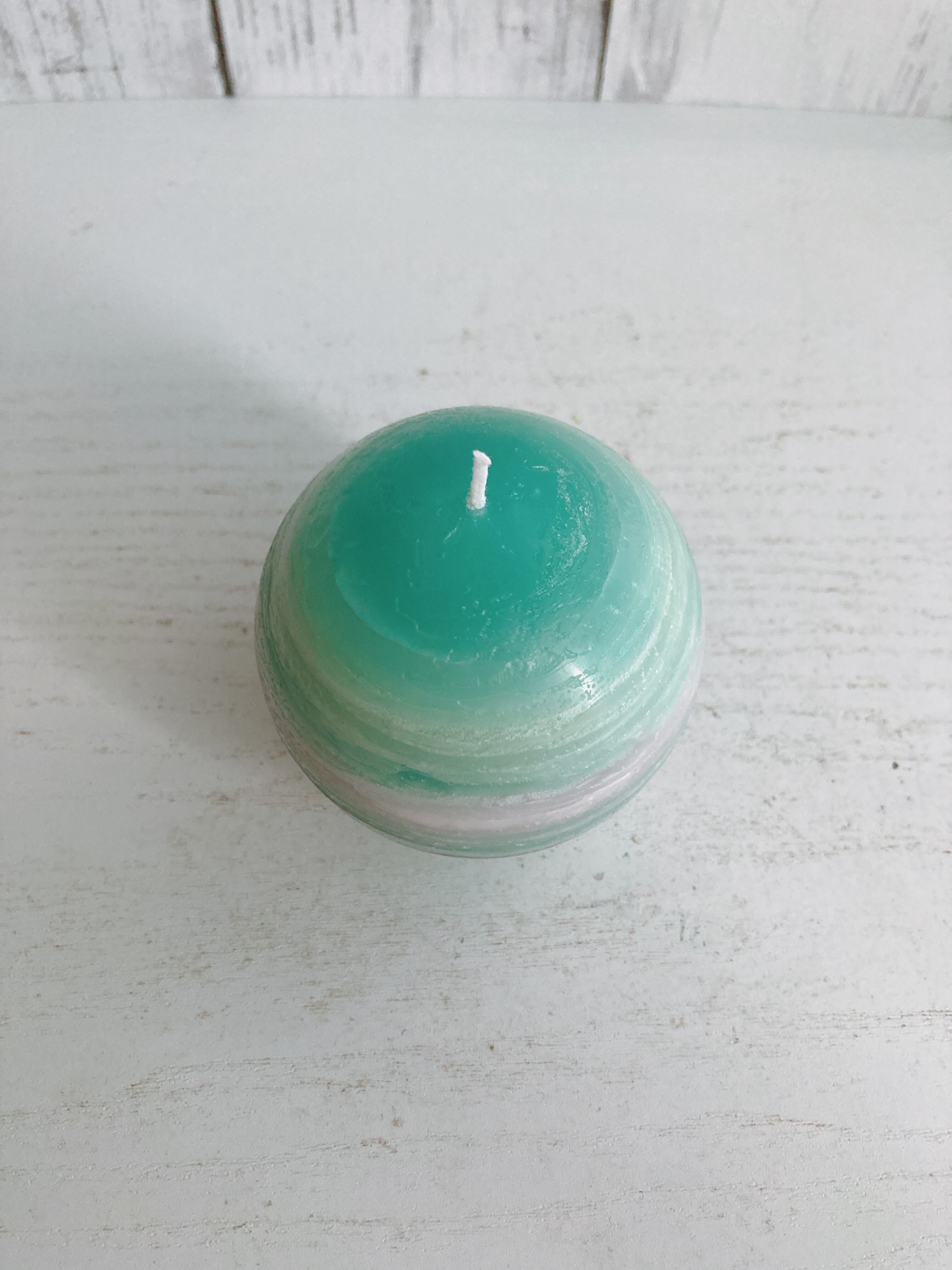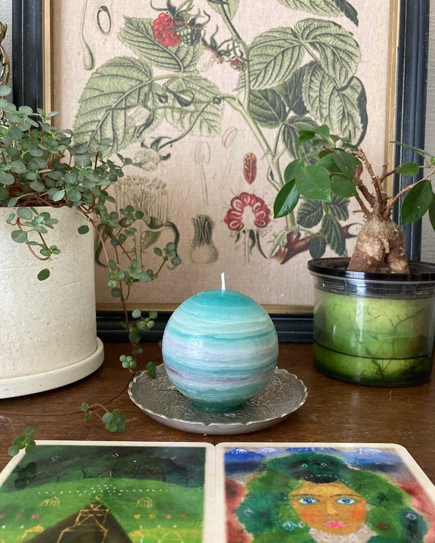 エメラルドグリーンのようなキャンドルを見つめながら深呼吸をしていると